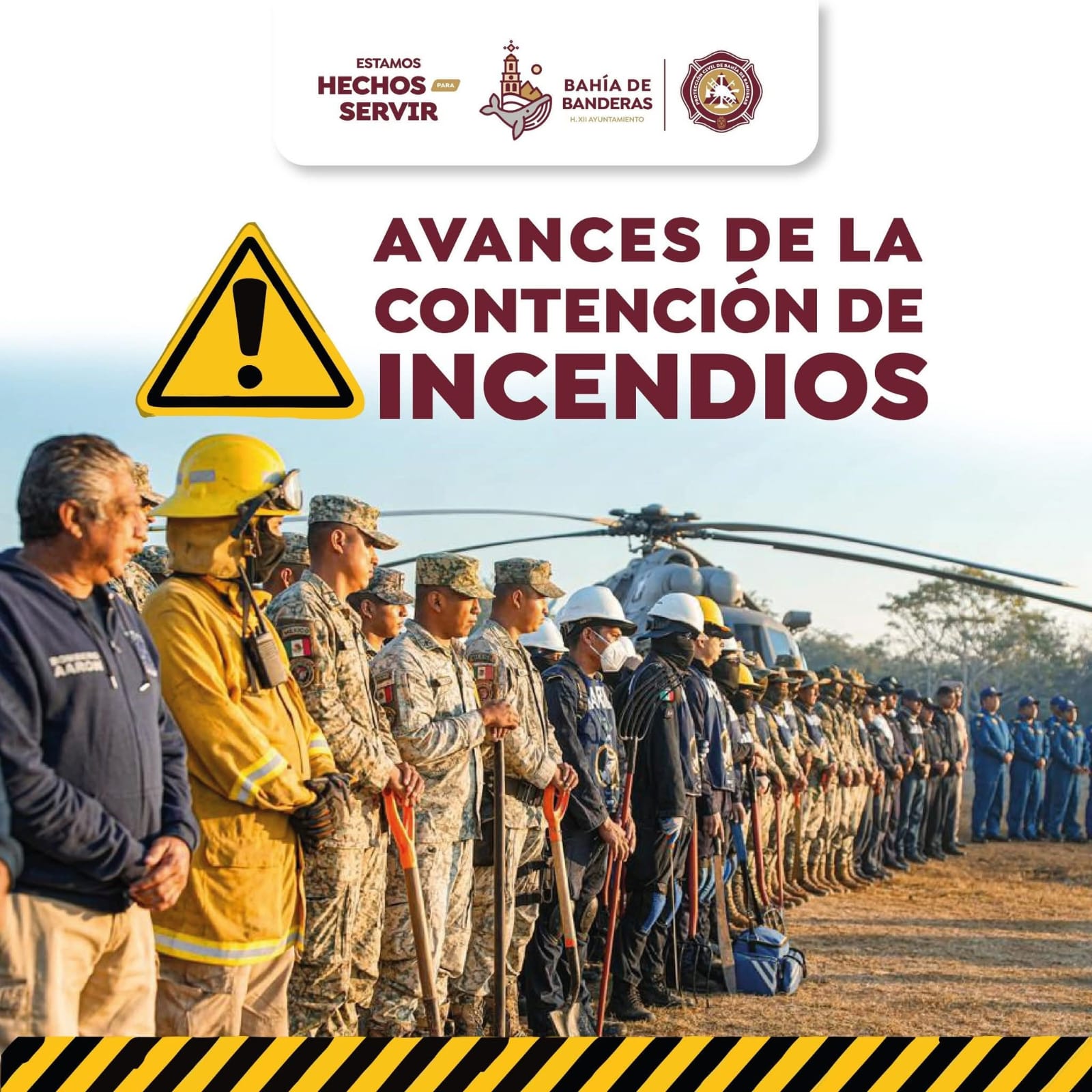 Durante la jornada del día de ayer, se contó con la participación de 212 elementos pertenecientes a corporaciones como Protección Civil Municipal, Secretaría de la Defensa Nacional, Secretaría de Marina, Comisión Nacional Forestal, así como Protección Civil y Bomberos del Estado, quienes trabajaron de manera ininterrumpida en acciones estratégicas para el control y liquidación del siniestro.